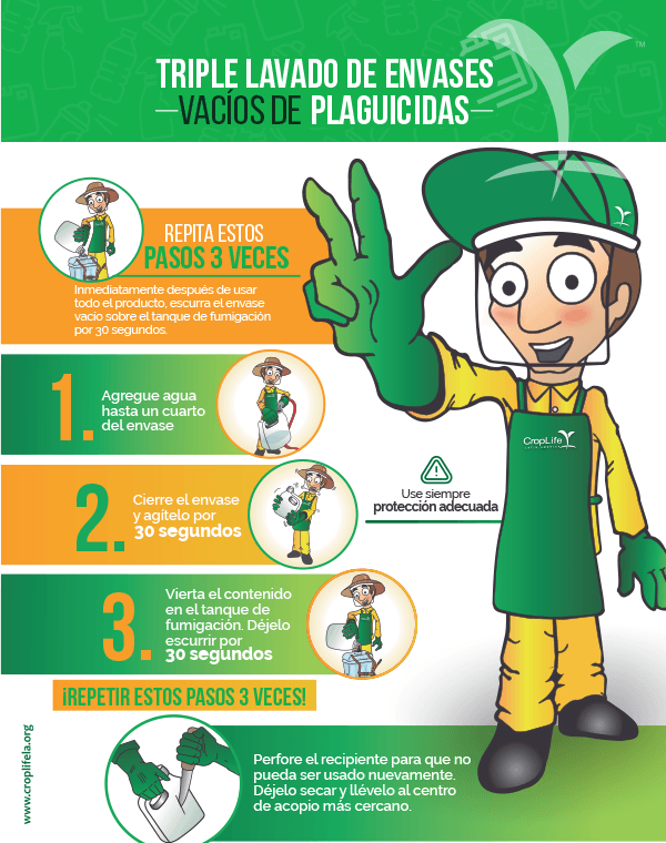 Sigue estos 3 simples pasos como una solución ambiental de los envases vacíos de plaguicidas.