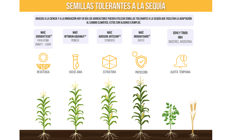 Ejemplos de cómo utilizar semillas tolerantes a la sequía para facilitar la adaptación al cambio climático.