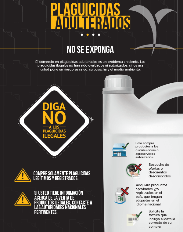 Los plaguicidas adulterados representan un grave riesgo para la salud humana y del medio ambiente. Compra seguro en los lugares autorizados.