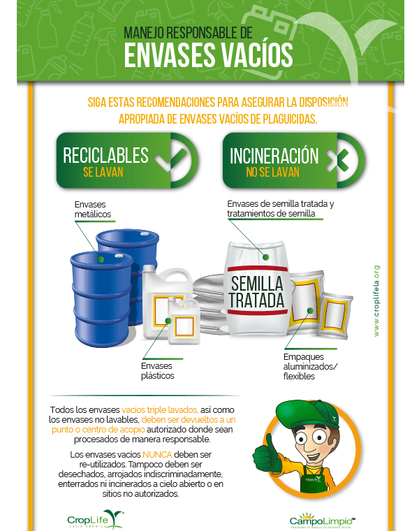 Siga estas recomendaciones para la correcta disposición de envases vacíos de plaguicidas.